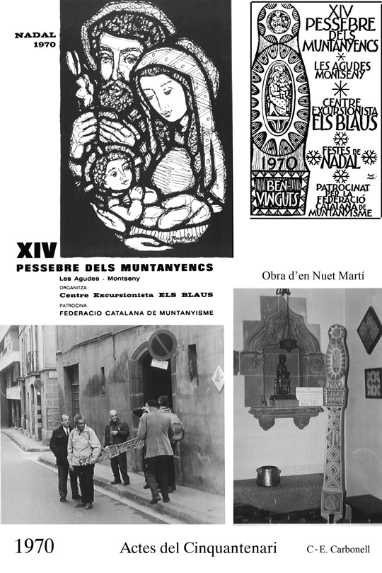 Entre els dies 12 i 13 de desembre del 1970, des de les 3 de la tarda del primer dia fins a les 9 del matí del segon, en relleus de quatre socis es va portar des de Sarrià el Pessebre dels Muntanyencs, al cim de Les Agudes del Montseny; va ser una forma de tancar els actes del Cinquantenari del Centre.